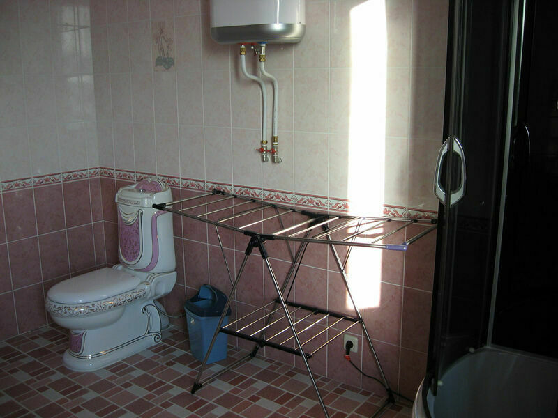 Большой сан. узел - 13,5 кв.м с унитазом, душевой кабиной, вода холодная, горячая (бойлер), стиральная машина, тазики , сушки для белья, еще отдельный туалет.