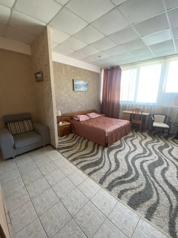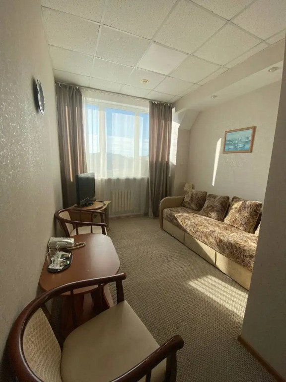 Оснащение номера зависит от выбранной категории. Из окон открывается вид на морской порт.