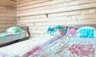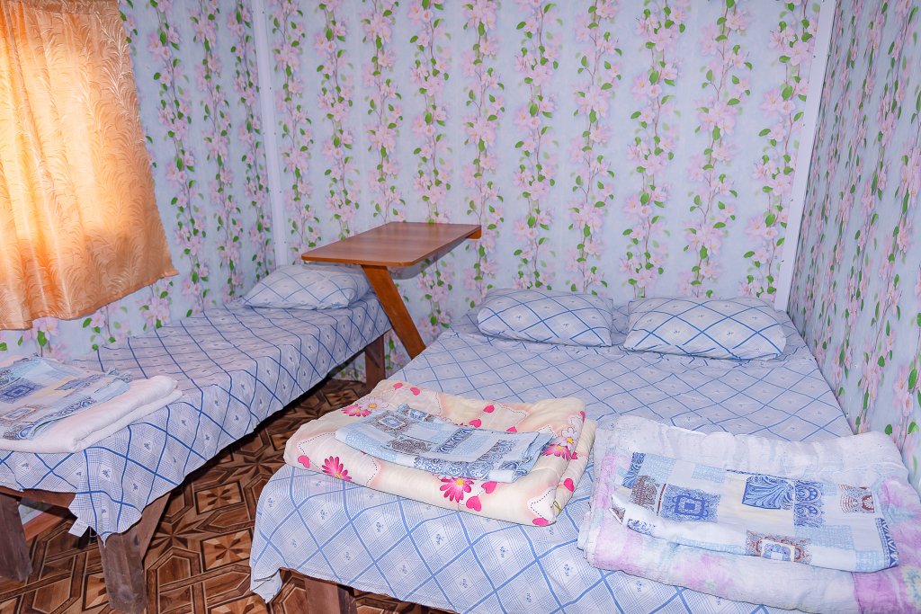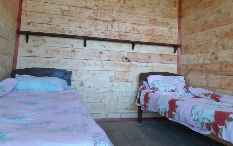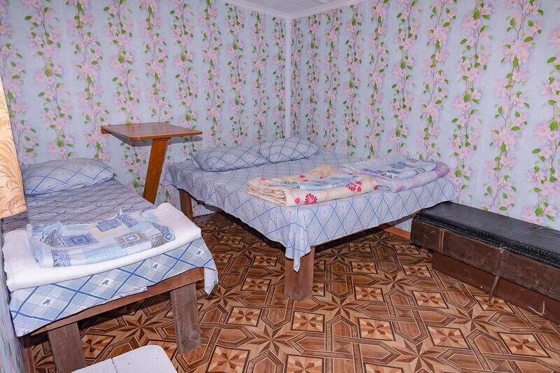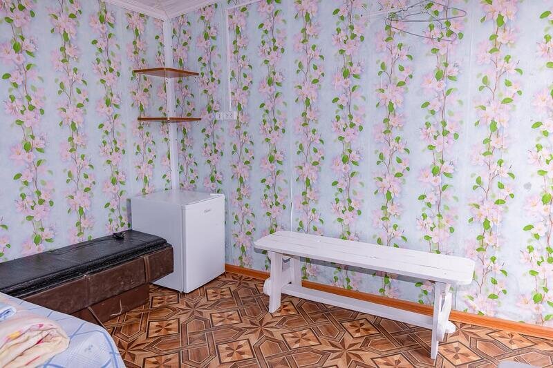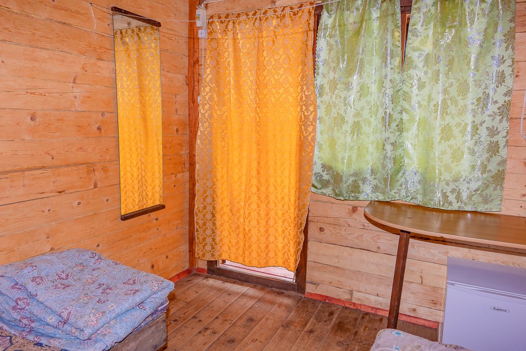 Комнаты укомплектованы холодильником, столом, лавочками или табуретками, розеткой, тремя местами для сна.