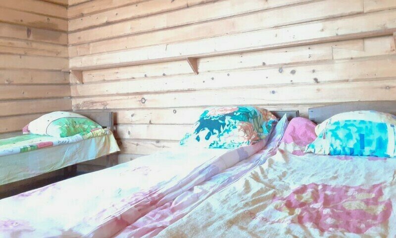 Коттедж сделан из бруса, с четырьмя комнатами на 2-3 человека и общей верандой. Стоимость указана за одну комнату в коттедже. Можно приехать большой компанией и снять весь коттедж.