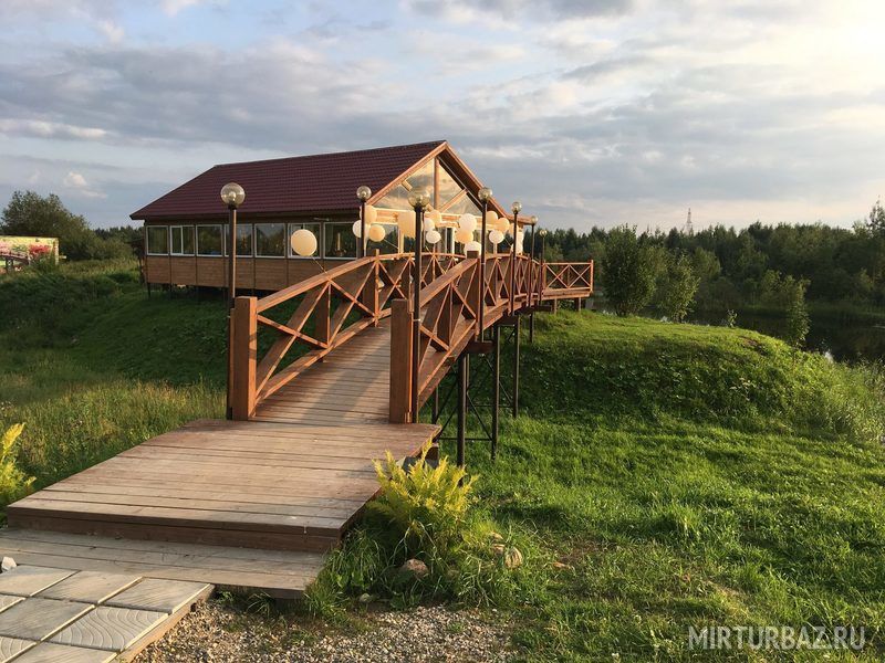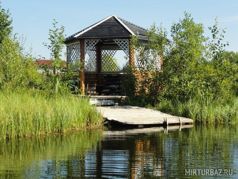 Беседка на берегу пруда площадью 155 м², столы скамьи, холодильник, чайник, оборудование для светомузыки, отдельная беседка для приготовления шашлыков. Стоимость аренды для проведения мероприятий в выходные и праздничные дни 45 000,00 рублей, в будние дни 30 000,00 рублей.