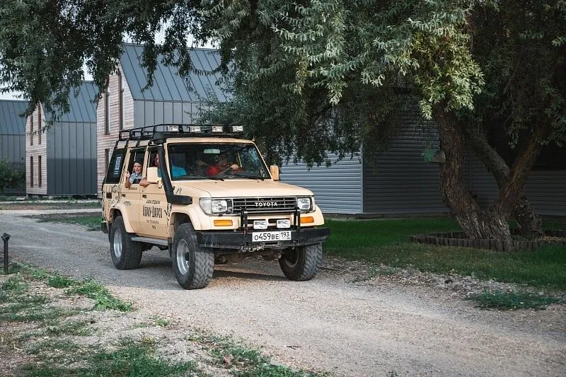 База отдыха готова организовать для своих гостей комфортный трансфер на джипе Ландкрузер, рассчитанном на комфортное размещение до 4 человек, от города Приморско-Ахтарск до самой базы на хуторе Садки. Рекомендуется бронировать трансфер заранее, не позднее, чем за 12 часов до планируемого времени поездки.