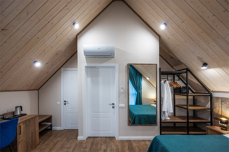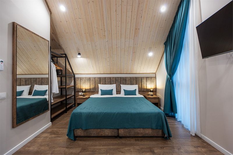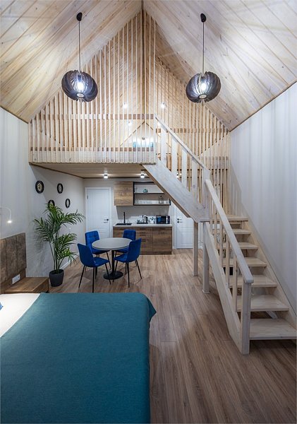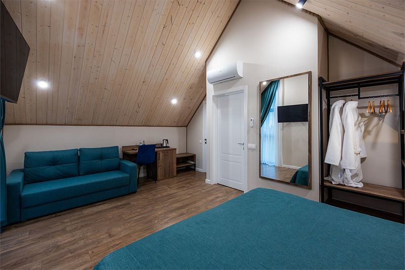 Уютный двухуровневый 4-местный номер с чудесным видом и выходом на общую террасу.
