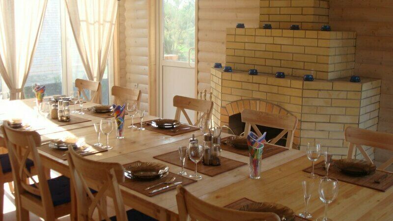 Отдыхающим предлагается трехразовое комплексное питание.На территории базы отдыха есть кухня с камином и летней верандой, где Вы сможете готовить пищу самостоятельно. Продукты можно приобрести на базе отдыха, здесь есть собственное подсобное хозяйство. Предлагается: свежее мясо, парное козье и коровье молоко, домашний творог и сметана, а также овощи из собственного огорода.
