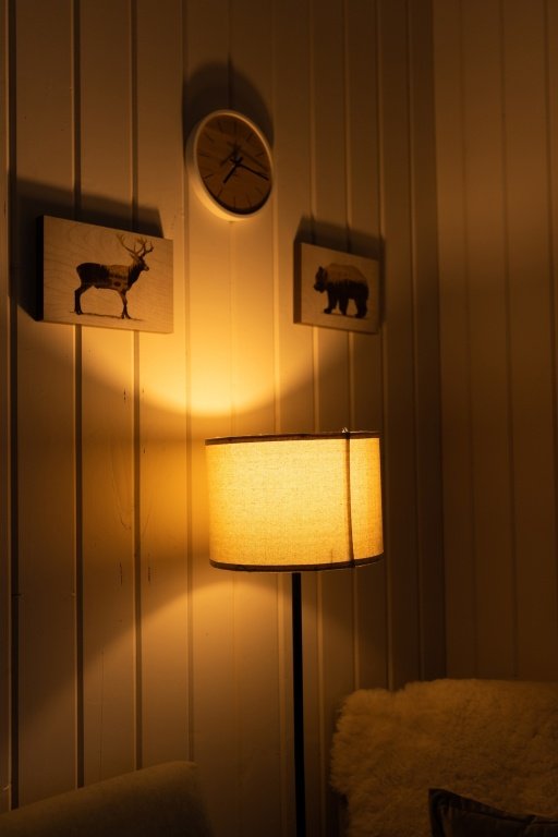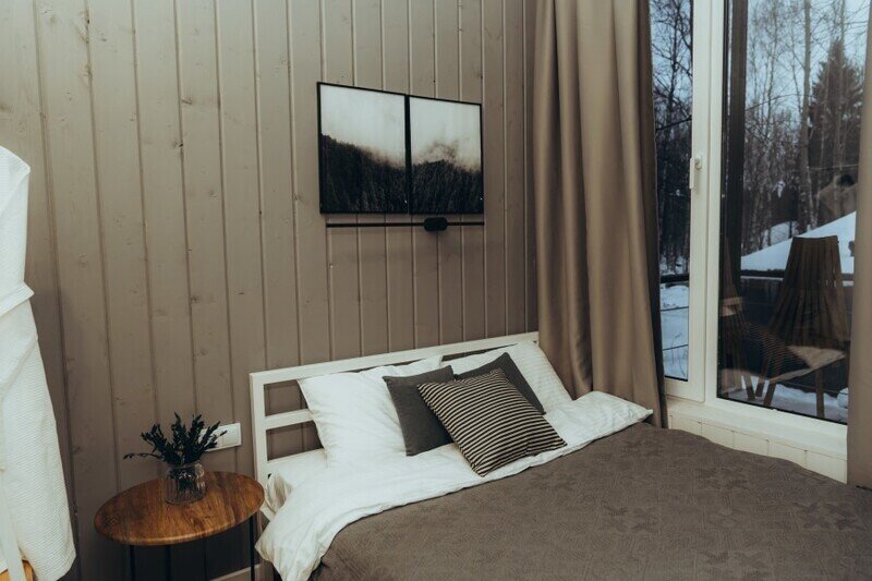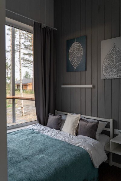 В отеле представлено 6 стильных комфортабельных домов с панорамными окнами и просторными террасами, открывающими вид на озеро. Каждый домик оборудован собственной электрической сауной.