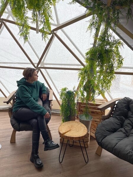 На территории эко-отеля есть уютное кафе-шатер, где можно пообщаться с другими гостями, согреться у камина и насладиться горячим кофе. За столы легко вмещается 30 человек.