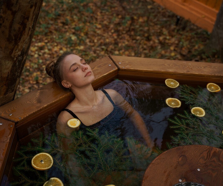 Для посетителей доступны два подогреваемых банных чана, расположенных на берегу озера. Эта уникальная конструкция объединяет в себе функции полноценной бани и купельного чана, в центре которого расположен удобный столик. В этих чанах Вы сможете насладиться купанием в любое время года, а присутствие хвойных и цитрусовых добавок не только наполнит воду ароматом, но и укрепит Ваш иммунитет.