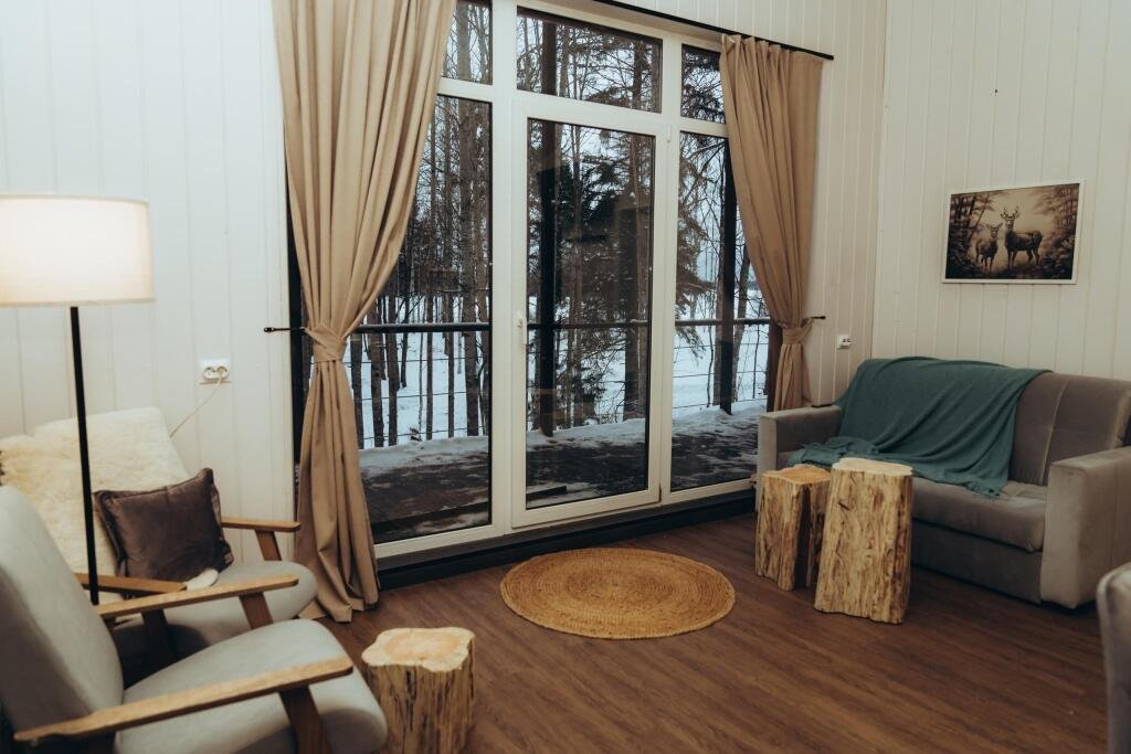 В каждом домике эко-отеля «Мох» имеется собственная электрическая сауна, предлагающая возможность расслабиться и согреться после прогулок по лесу.