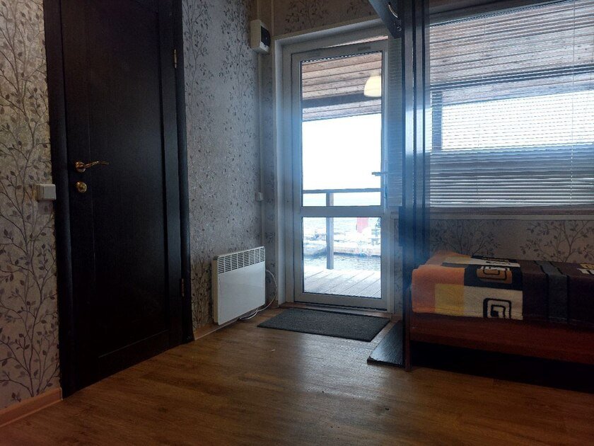 В деревянном доме 4 уютных номера. У каждого номера своя кухня, санузел с душевой кабиной и отдельный вход с общей открытой террасы с видом на озеро. Каждый номер, площадью 18 кв.м. рассчитан на 2-3 человек. ЦЕНА указана за 1 номер.
