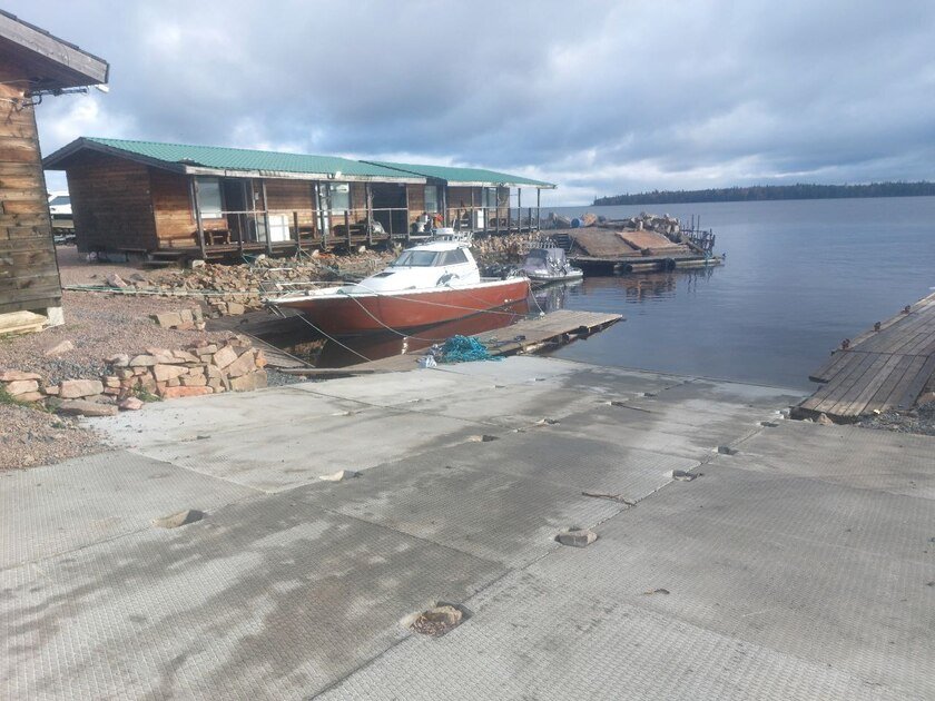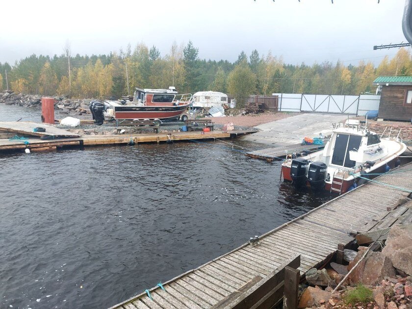 Территория с собственным причалом и подъемно-спусковым устройство для лодок и катеров. Бесплатная закрытая парковка.