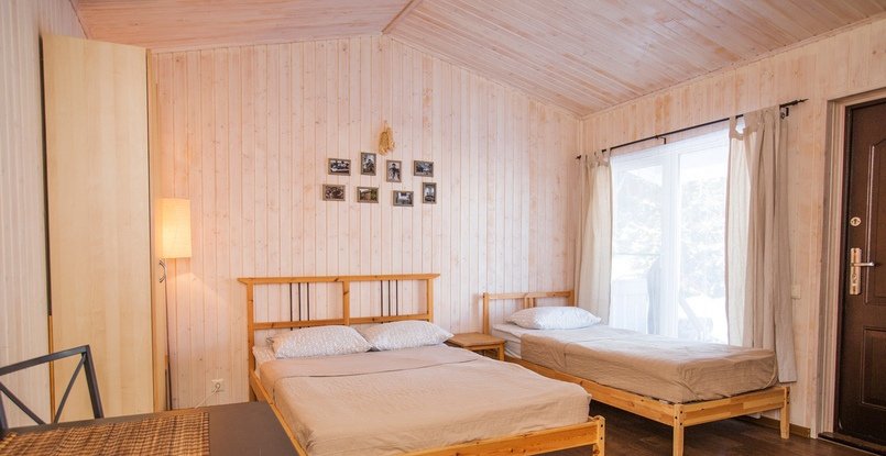 Уютные домики и номера в норвежском стиле, территория небольшая и чувствуешь себя уединенно. Есть мангал, дрова. В домике чисто и уютно.