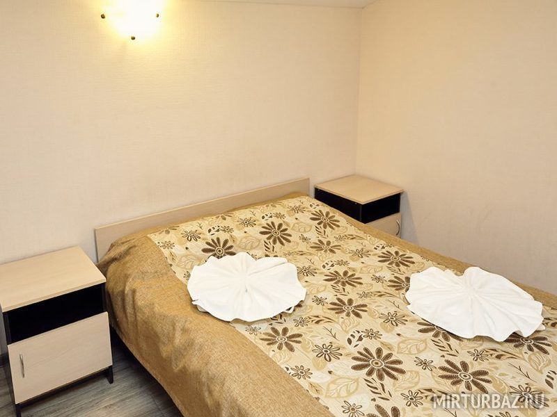 Оснащение номера: 2 стандартные раздельные кровати, душ и туалет в номере, телевизор, тумбочки, табурет, стол, холодильник, вешалки для одежды, зеркало, стаканы, информационная папка для гостя, кондиционер.