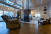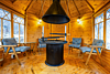 - основной дом с тремя спальнями, кабинетом, кухней, столовой и каминной зоной;