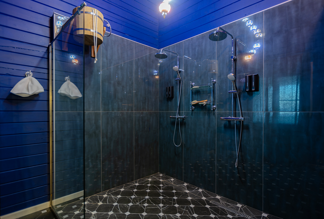 - двухэтажный банный комплекс с хаммамом, джакузи на открытой террасе, бильярдом, спальней и кухней-гостиной;