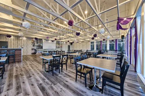 В банкетном зале есть всё необходимое оборудование для проведения мероприятий (проектор, экран, музыкальные колонки и др.) Есть возможность подключения своего оборудования.