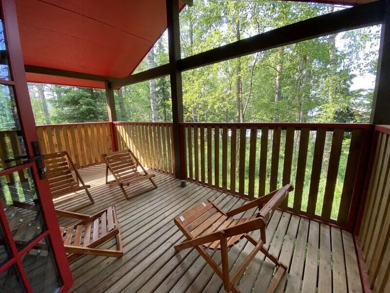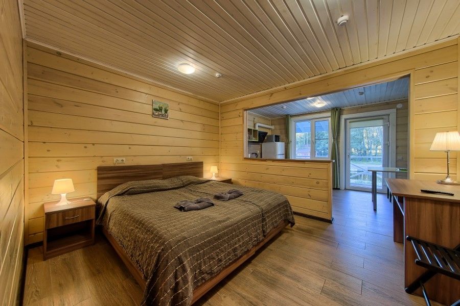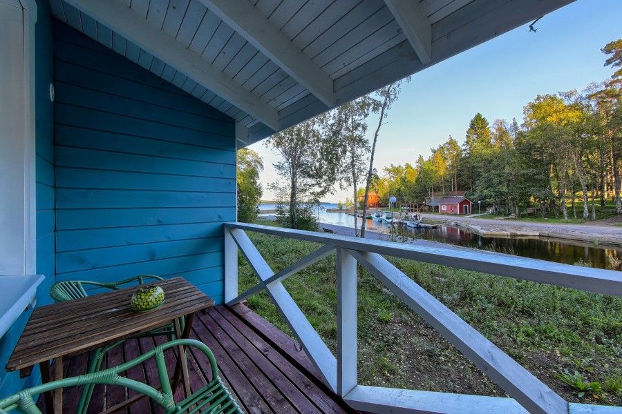 Уютный номер с видом на Ладожское озеро. Номера включают в себя: прихожую, санузел с душевой, уютную спальню, кухню, обособленную террасу с видом на Ладожское озеро. Каждый номер оснащен всем необходимым: холодильник, микроволновая печь, чайник, электрическая варочная панель, комплект посуды, телевизор, фен, постельное белье, полотенца. Общая площадь номера 29 м.кв. На берегу Ладоги для гостей номеров организовано место для барбекю в беседке с садовой мебелью.