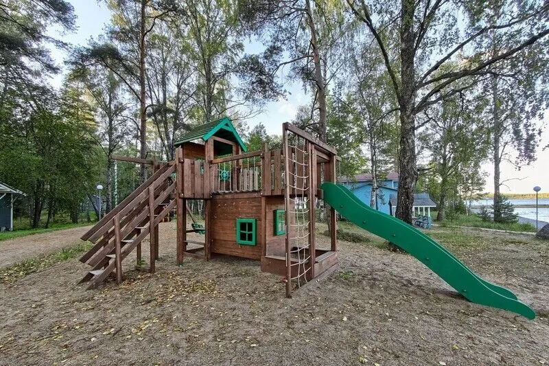 Недалеко от ресепшена есть детская площадка с 2 качелями, песочницей, горкой, канатом, штурвалом, лестницей и маленьким домиком — всё что нужно для веселого времяпрепровождения. На берегу, у открытой беседки есть детская площадка для детей.