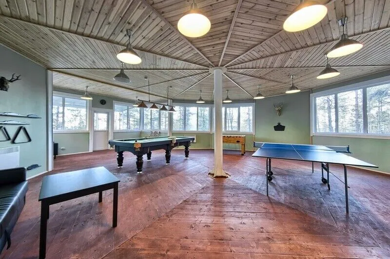 К вашим услугам игровой домик, здесь можно поиграть в настольный теннис, бильярд (русский/пул), настольный футбол. Для удобства в игровой есть большой диван, барные стулья, журнальный столик. Терраса с видом на Ладожское озеро.