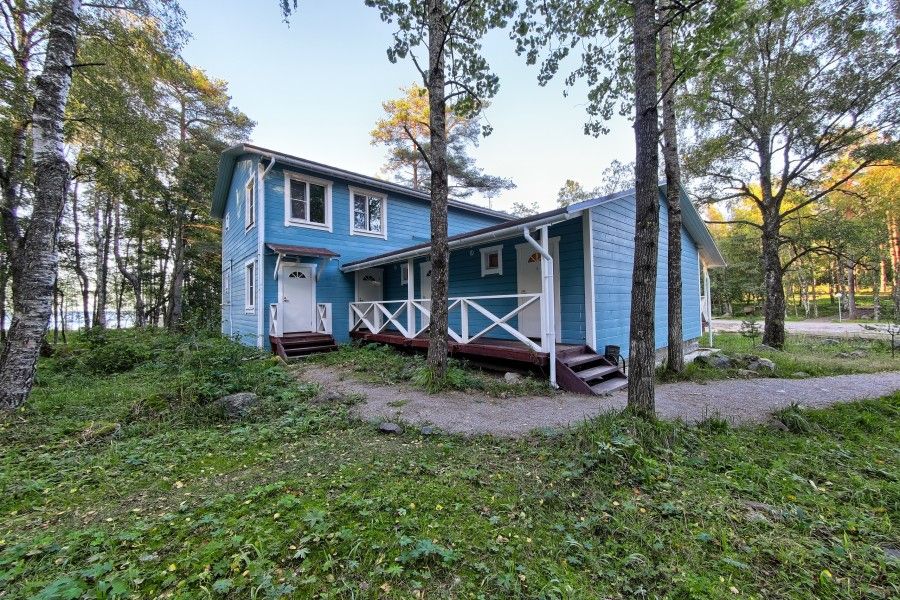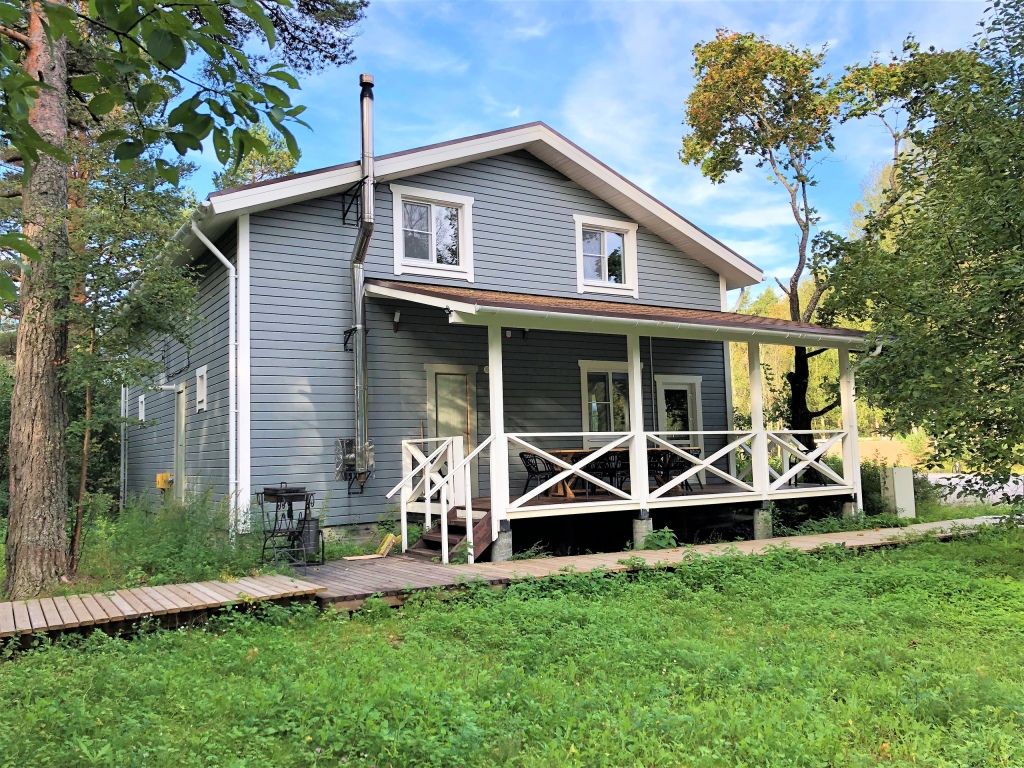 Двухэтажный коттедж с дровяной сауной. Расположен прямо на берегу Ладожского озера. Первый этаж коттеджа состоит из просторной прихожей, кухни-гостиной, ванной комнаты. На втором этаже две спальни и санузел. Коттедж оборудован всем необходимым для комфортного проживания: холодильник, варочная панель, посудомоечная машина, микроволновая печь, чайник, комплект посуды, фен, стиральная машина, вся необходимая мебель, в том числе большой диван, где с комфортом можно дополнительно разместить 2 человека, мангал. Общая жилая площадь коттеджа 120 м.кв.