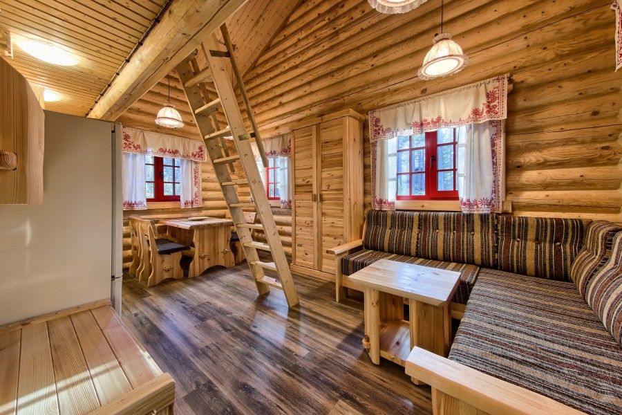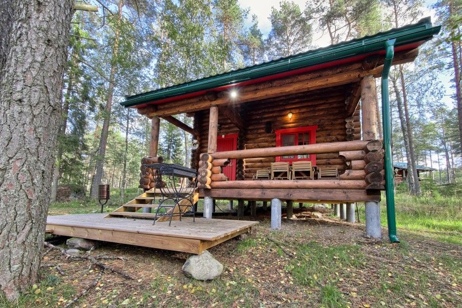 Уютный деревянный коттедж в Карельском стиле. Домики расположены в глубине леса на сосновой аллее. Терраса с зоной барбекю. На первом этаже гостиная зона с раскладывающимся диваном, кухня, ТВ, журнальным столиком, шкафом. На кухне есть все необходимое: холодильник, варочная поверхность, микроволновая печь, электрический чайник, вся необходимая посуда. Второй этаж - это просторная уютная мансарда с одной двуспальной кроватью. Площадь дома 40 кв.м.