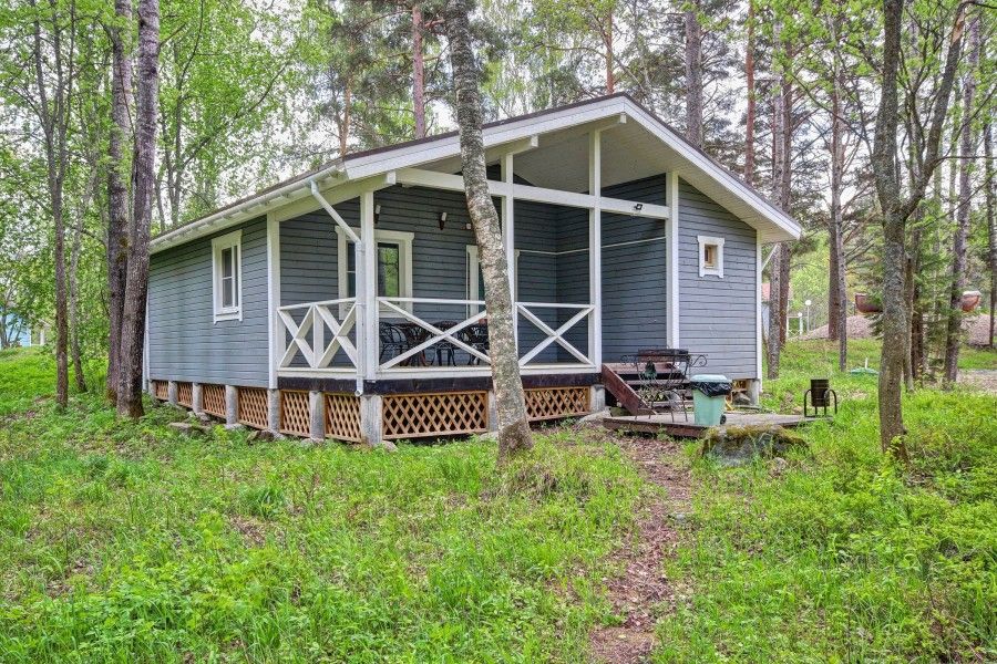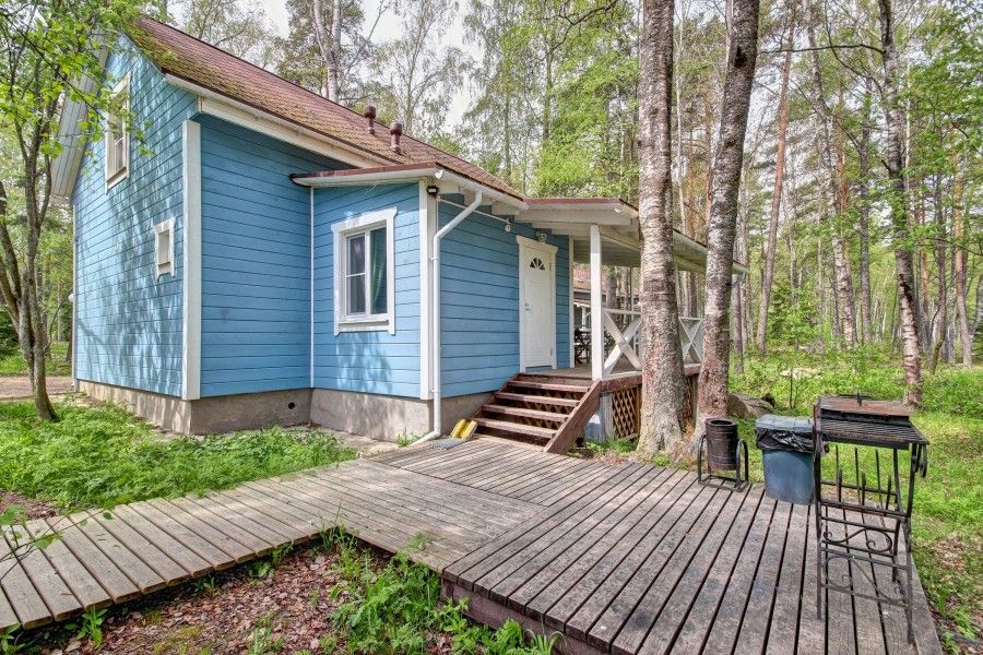 Одноэтажный коттедж с двумя спальнями и дровяной сауной. Коттедж состоит из прихожей, кухни-гостиной, ванной комнаты. Также, на первом этаже расположены две спальни. Есть второй выход на просторную террасу с видом на Ладожское озеро и экотропы. На кухне есть все необходимое для комфортного проживания: холодильник, варочная панель, посудомоечная машина, микроволновая печь, чайник, комплект посуды, фен, стиральная машина, вся необходимая мебель, мангал. Общая площадь коттеджа 85 м.кв.