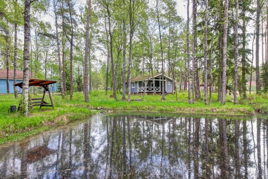 Двухэтажный коттедж с 2 спальнями и дровяной сауной. Расположен у природного ручья. Просторная терраса с мебелью и зоной для барбекю. Первый этаж состоит из просторной прихожей, кухни-гостиной, ванной комнаты, которая включает в себя раздельный туалет, умывальник с двумя раковинами, душевую комнату с двумя душами, дровяную сауну. На втором этаже две просторные спальни (20 м.кв.), санузел. Коттедж оборудован всем необходимым: холодильник, варочная панель, посудомоечная машина, микроволновая печь, чайник, комплект посуды, фен, стиральная машина, диван, мангал. Комфортное размещение до 6 человек. Общая площадь коттеджа 120 м.кв.