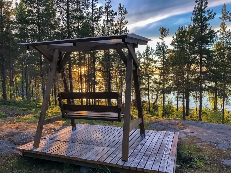 Путешествие с паройХорошее место для перезагрузки от городской суетыТурбаза расположена в лесу, на берегу Ладожского озера. Вокруг тишина и очень красивые виды. Домики симпатичные, оборудованы всем необходимым. Кровать удобная, матрас хороший. Интерьер симпатичный, есть необходимый набор посуда и шампуры. Мангал удобный