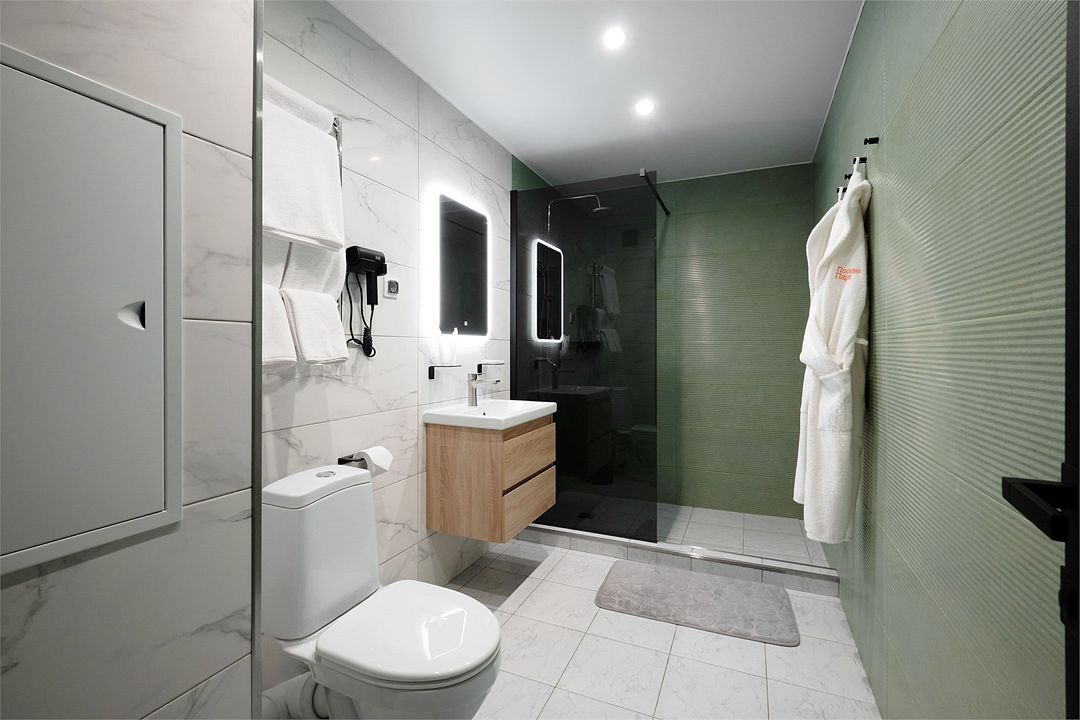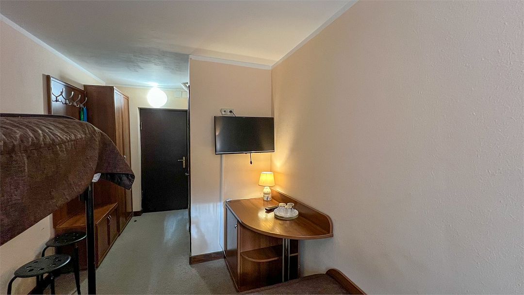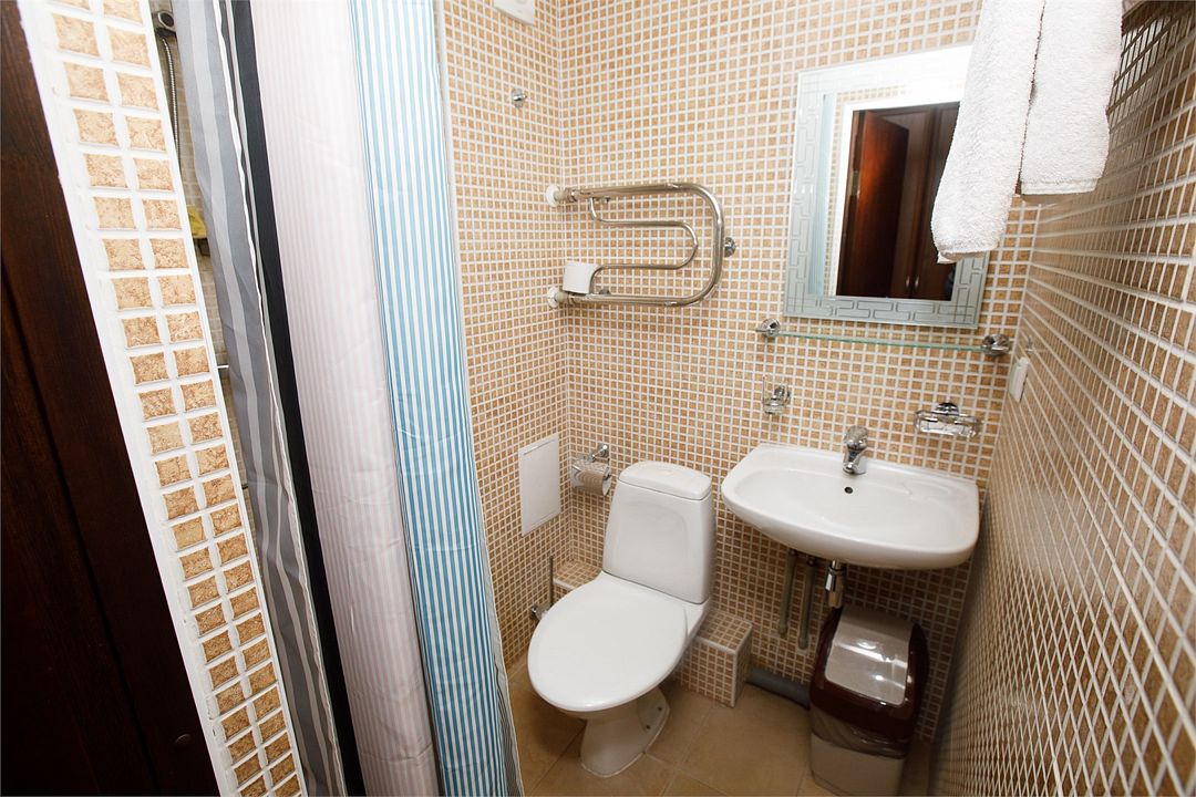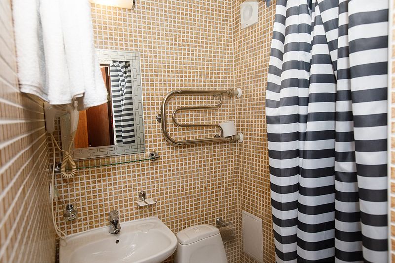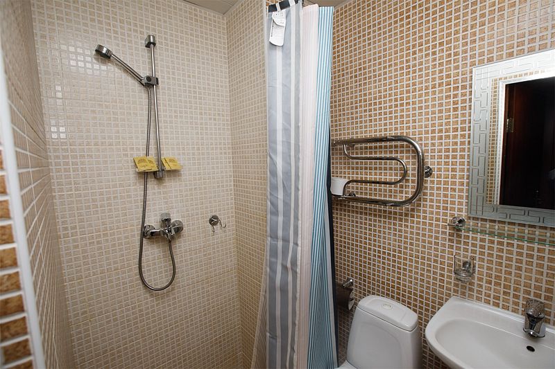 Он подойдет для проживания двух человек. В комнате имеется все необходимое: телевизор, холодильник, прикроватные тумбочки. В ванной комнате данной категории номеров располагается душ.