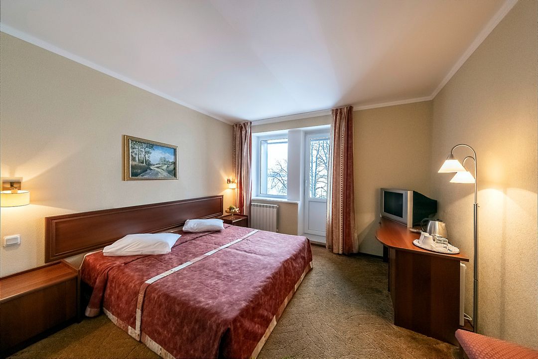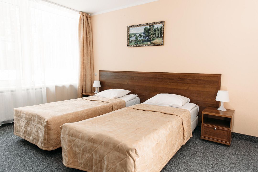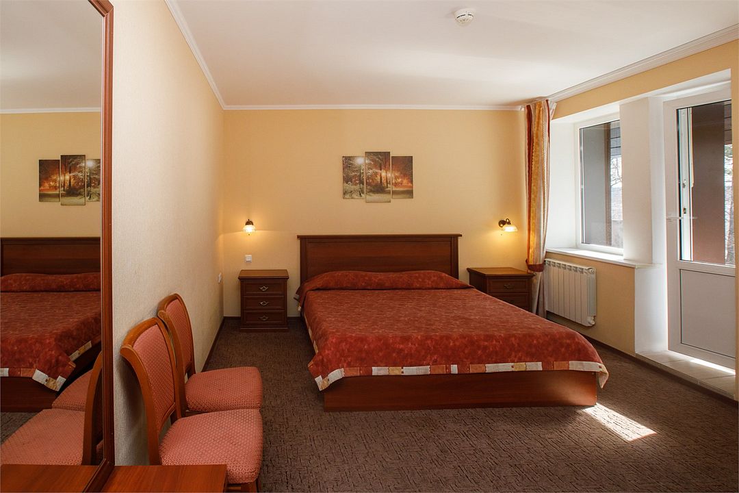 Просторный номер категории комфорт с одной большой или с двумя односпальными кроватями, подойдет для проживания двух человек или семьи . В комнате имеется все необходимое: телевизор, холодильник, прикроватные тумбочки. В ванной комнате данной категории номеров располагается душевая кабина. Есть возможность установки дополнительного спального места. Номера находятся в пятом корпусе.