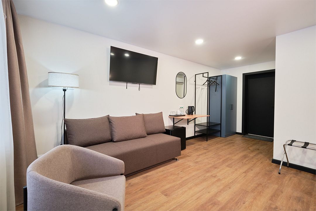 Номер категории «Делюкс» подойдет для ценителей комфорта и функциональности, не поступаясь при этом стилем и качеством.