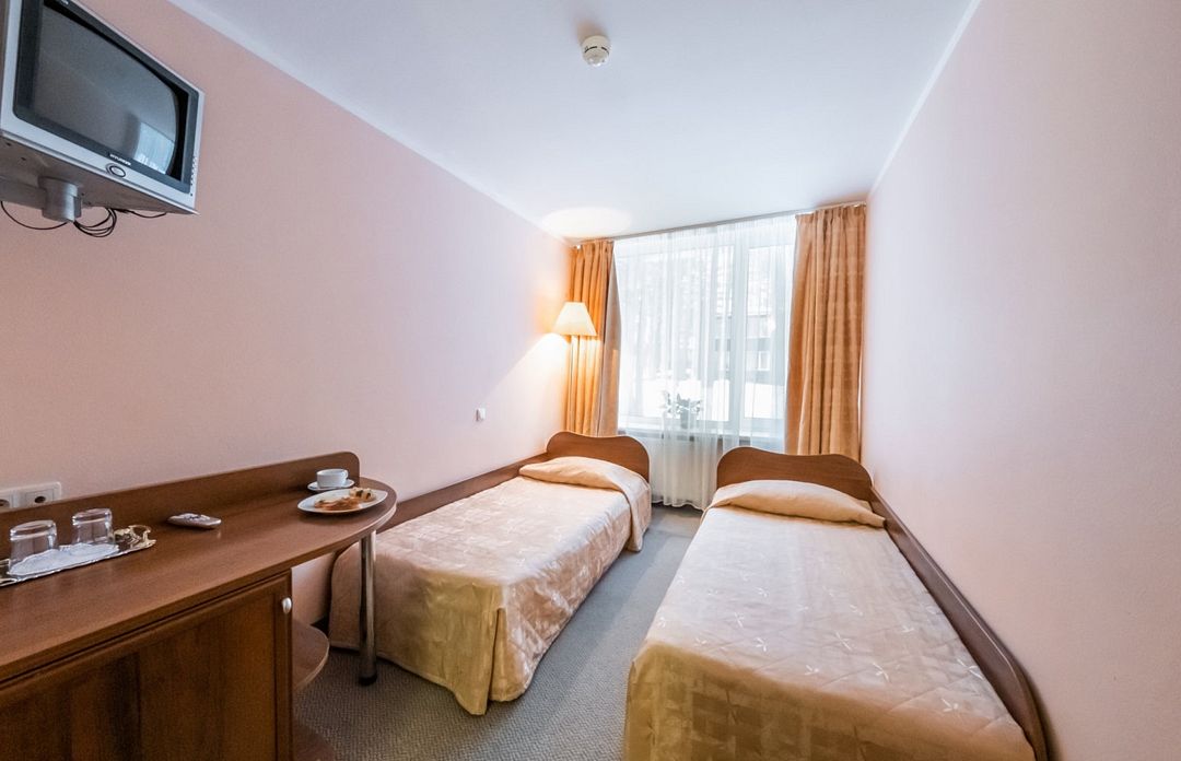 Стандартные номера могут быть с двумя односпальными кроватями или одной двуспальной, подойдут для размещения одного - двух человек. Номер небольшой по площади, тем не менее, комната оборудована всем необходимым: телевизором, холодильником, прикроватными тумбочками. В ванной комнате данной категории номеров располагается душевая кабина. Номера находятся во втором и четвертом корпусах.