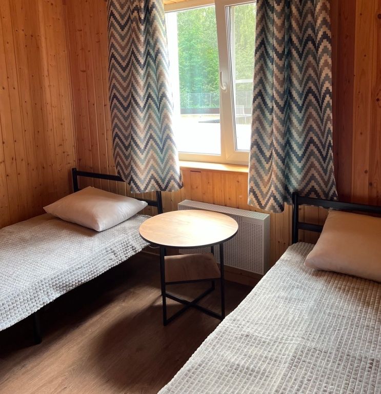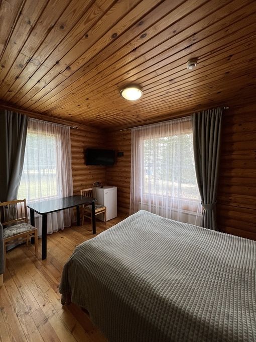 Путешествие с паройХорошее место для отдыха от городаМне очень понравилось,территория зелёная,ухоженная,очень тихо,рядом лес,озеро,можно покататься на лодках,есть велосипеды,самокаты. Персонал очень душевный,было приятно общаться. Жили в двухместном номере,с холодильником и телевизором,очень маленький,но нам хватило для двоих. В номере чисто,в душе туалете тоже все убирали хорошо. Конечно,кто любит комфортное проживание по полной программе,точно не сюда,в этом плане все простенько,но мы ехали за природой.Жарили шашлыки,есть беседки с мангалами,дрова,все очень удобно.Попробовали обед,для меня очень постно,супчик ничего так,голубцы были практически из одной капусты,почти сырой. 400 рублей такой обед точно не стоит. Не смотря на небольшие недостатки приехала бы ещё раз,из-за душевной обстановки,тишины,природы.