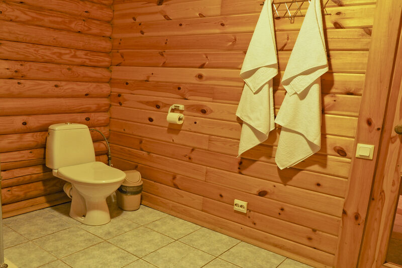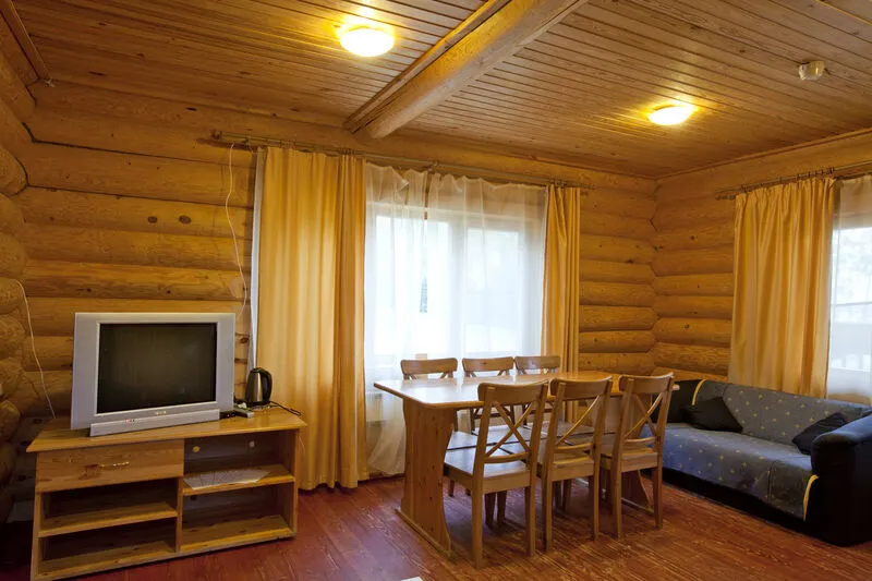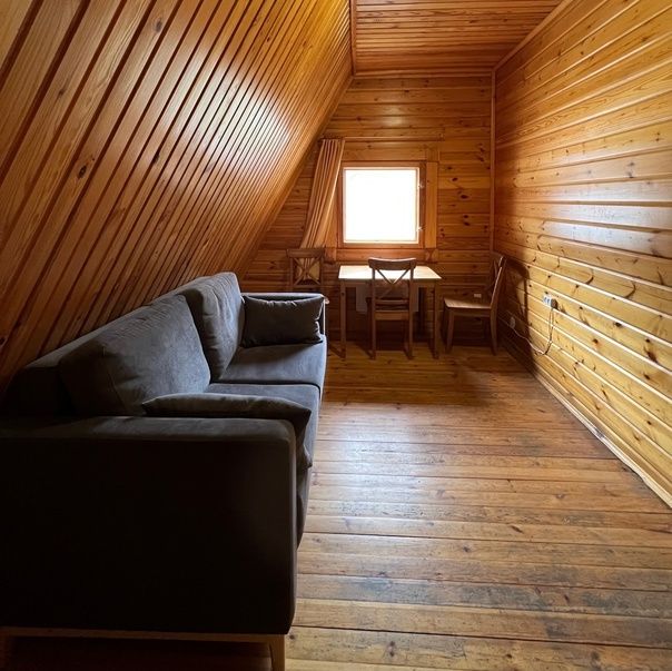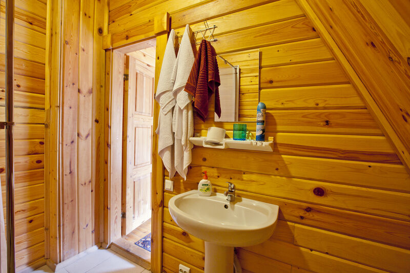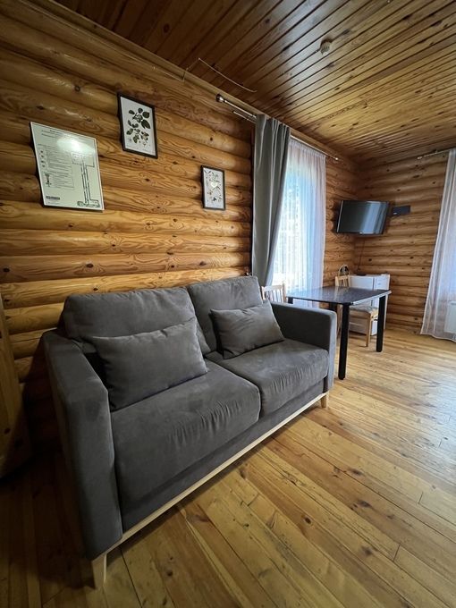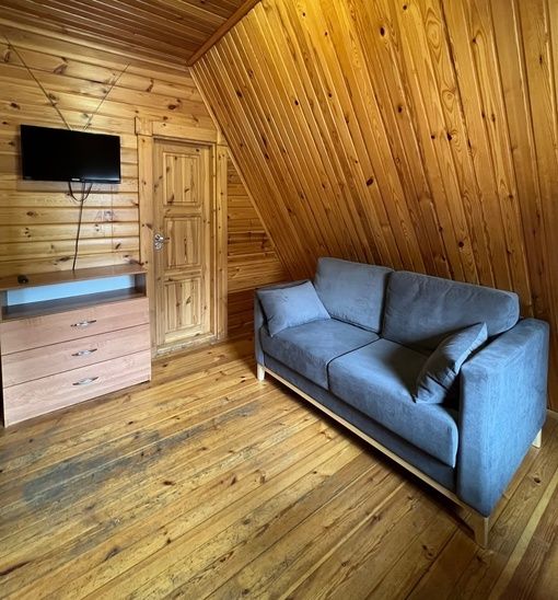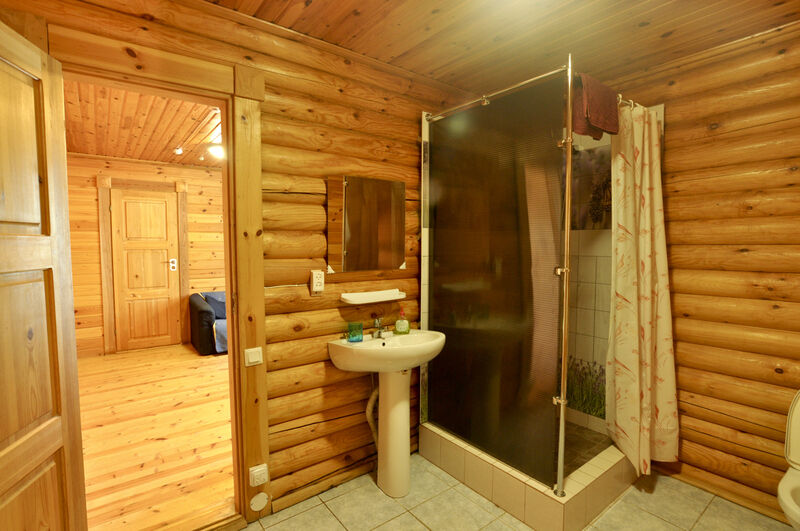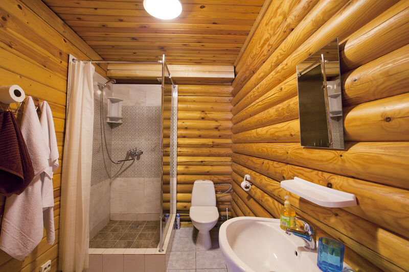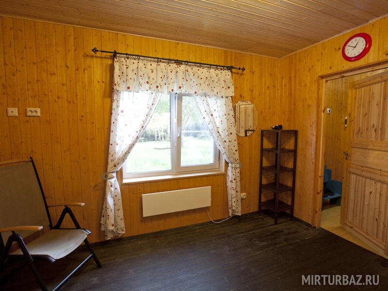 В коттедже расположены: большая комната, санузел, душевая и дровяная баня.