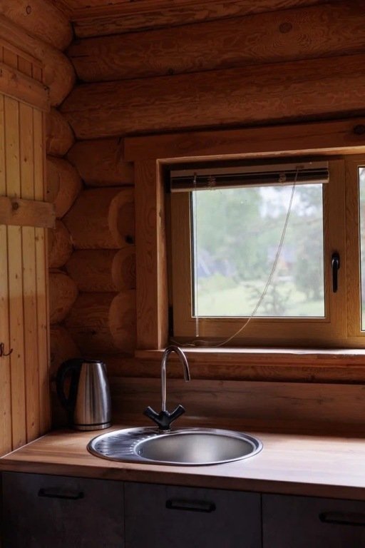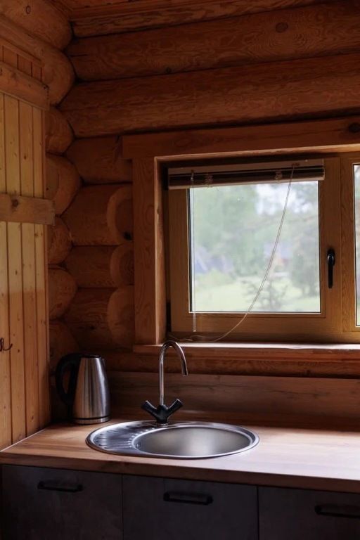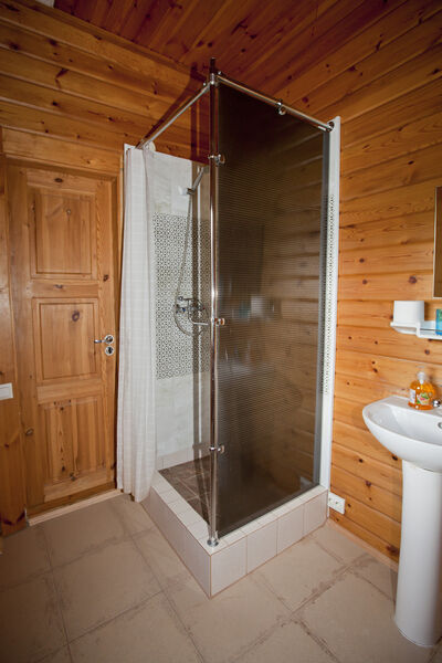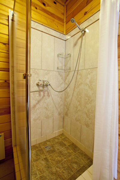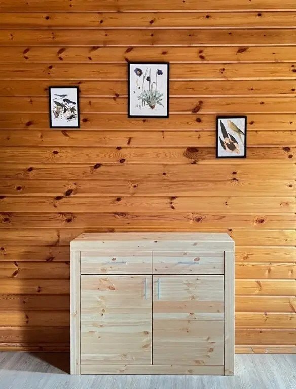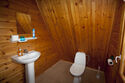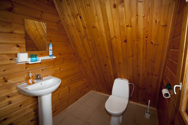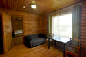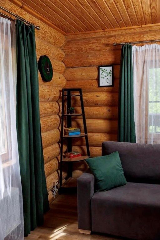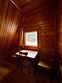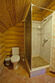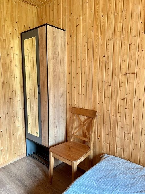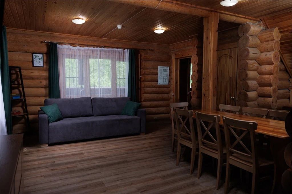 В коттедже расположены: большая комната, санузел, душевая и дровяная баня.