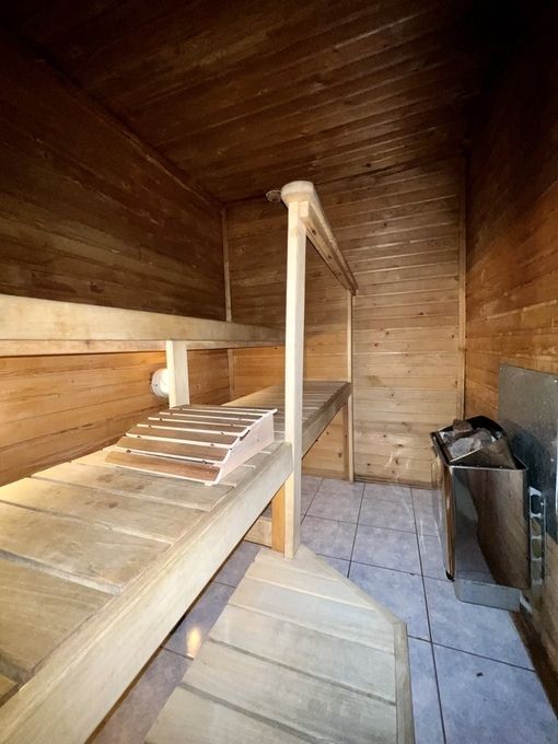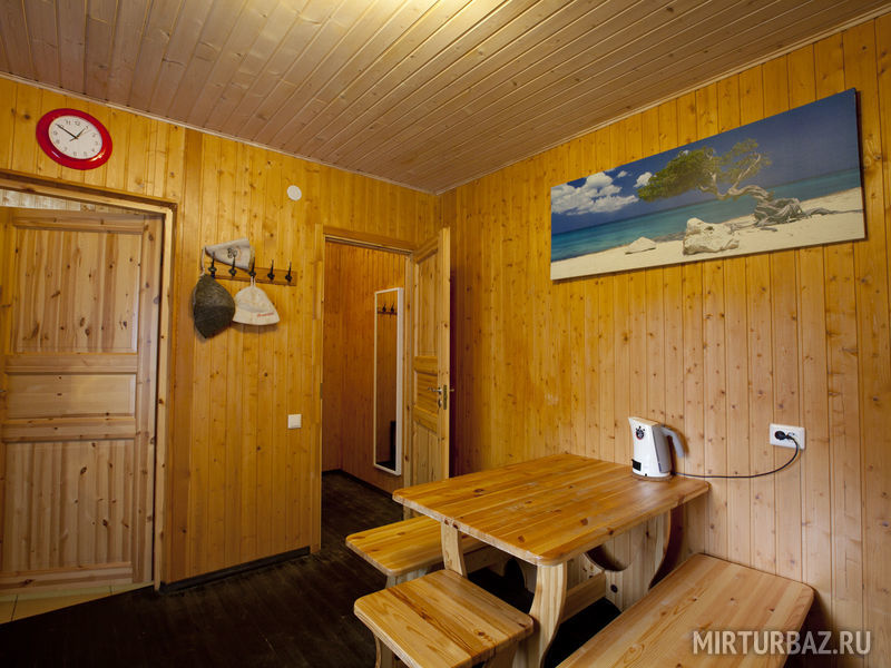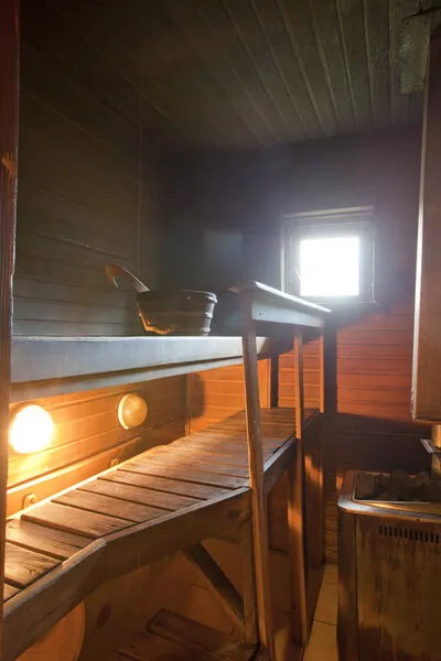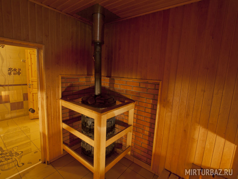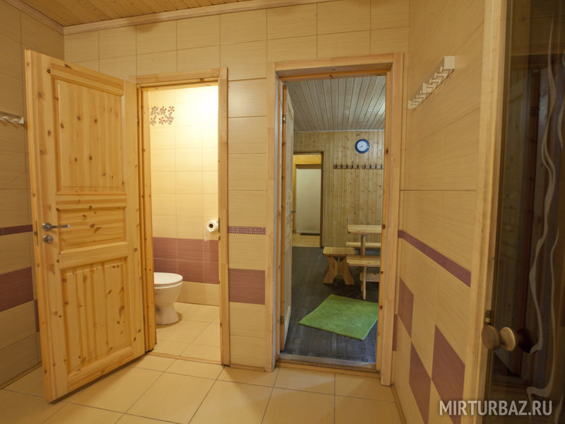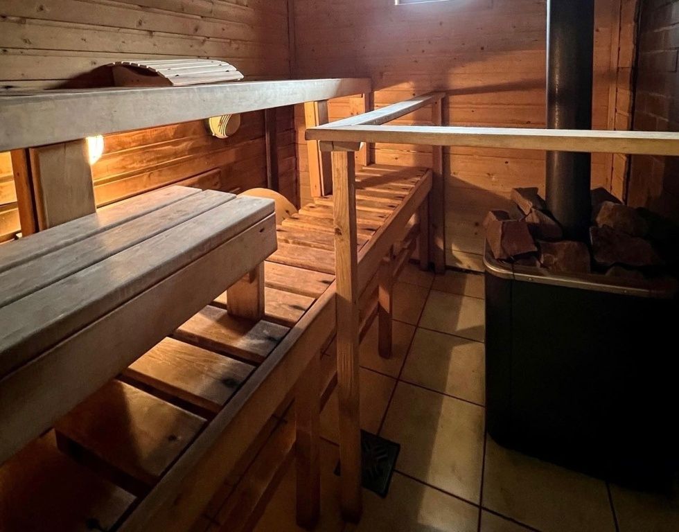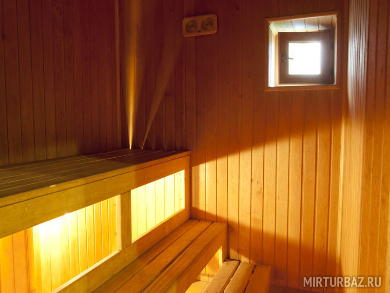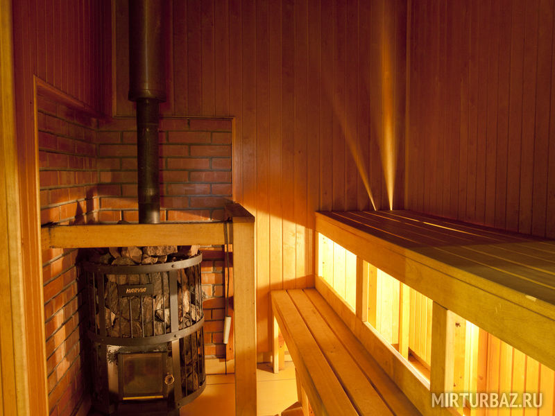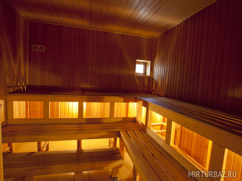 В коттеджах и номерах располагаются отдельные сауны. Также на территории базы расположен банный комплекс, состоящий из двух отделений: большая баня вместимостью до 10 человек и маленькая баня вместимостью до 6 человек. В каждом отделении находится парная, комната отдыха, кухонный уголок, раздевалка, душевая и санузел.