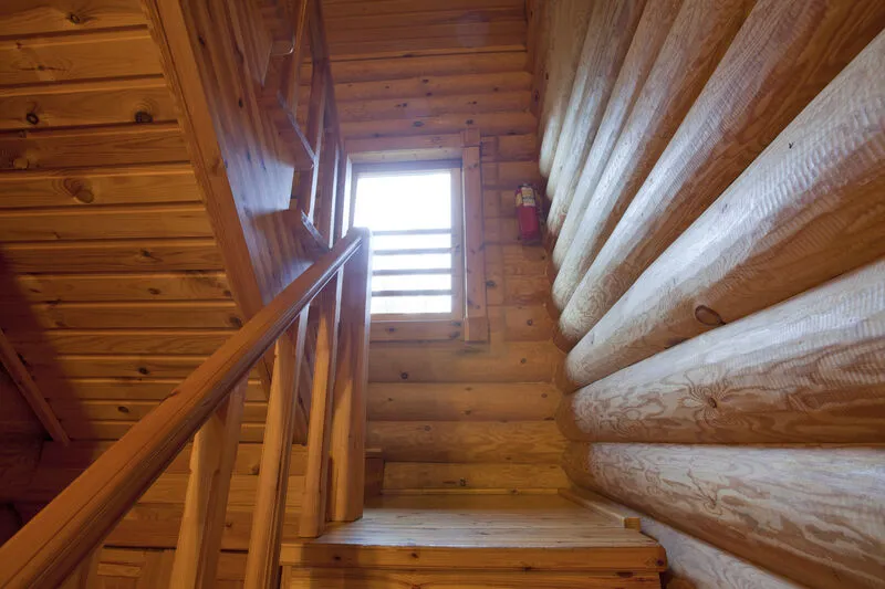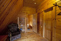 На первом этаже расположены: гостиная, кухня, санузел, душевая, сауна.