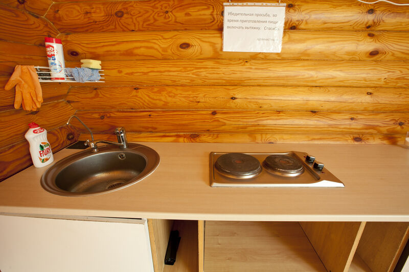 При желании все гости могут воспользоваться общей кухней, расположенной во втором корпусе. Кухня оборудована большим холодильником, электрической плитой, мойкой и микроволновой печью.