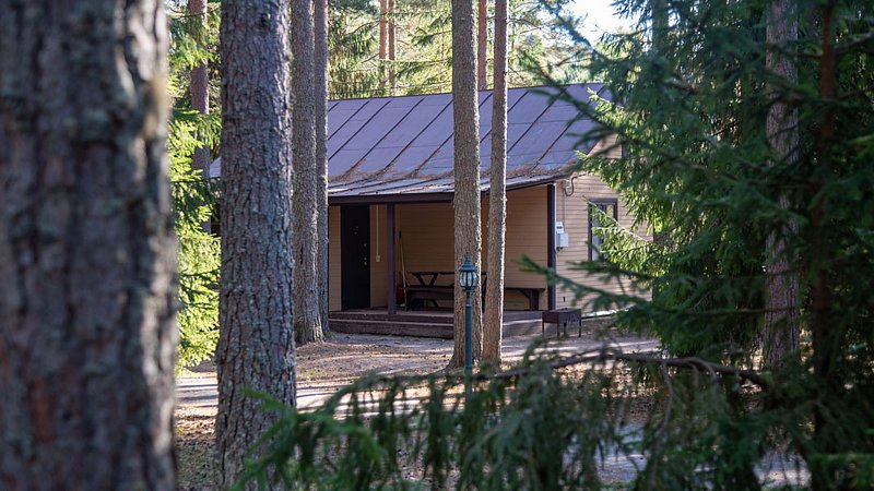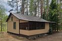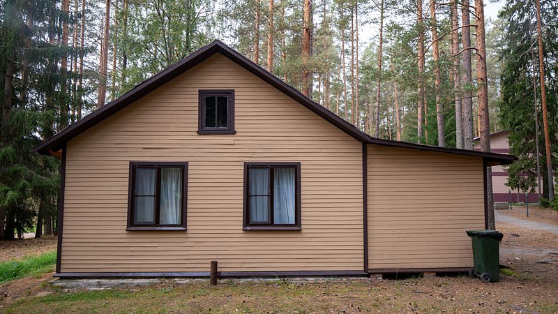 Одноэтажный дом с террасой и видом на лес. В коттедже могут свободно разместиться 6 человек.