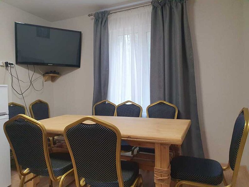 Коттедж со всеми удобствами. Есть сауна, 2 спальни, душ, санузел и телевизор. Мини - кухня (без плиты), холодильник с микроволновкой.