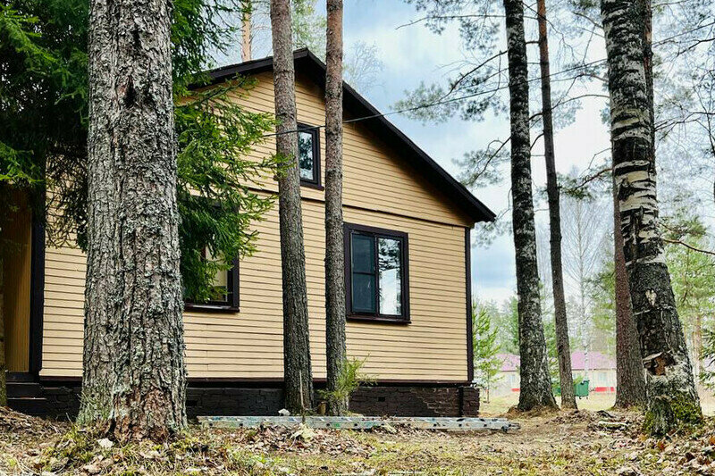 Аренда экологичных коттеджей из натуральных материалов на берегу озера.