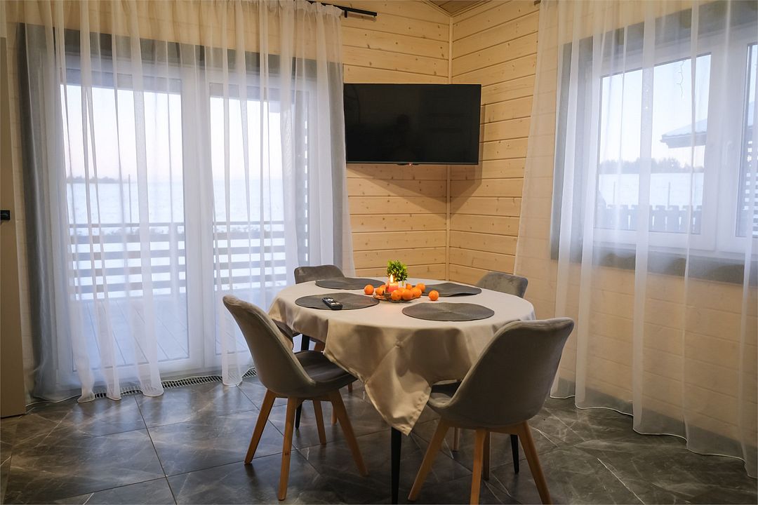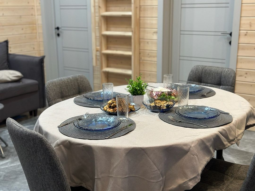 Здесь вас ждет просторная гостиная-кухня, где вы сможете готовить любимые блюда и собираться всей семьей или компанией друзей за просмотром фильма. А после насыщенного дня, проведённого на свежем воздухе, вас ждёт комфортная спальня с двуспальной кроватью для сладкого сна и полноценного отдыха.