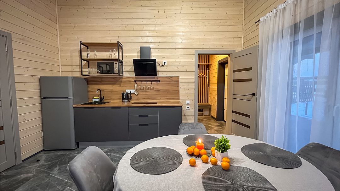 - Домик оснащен собственной сауной, которая входит в стоимость проживания.