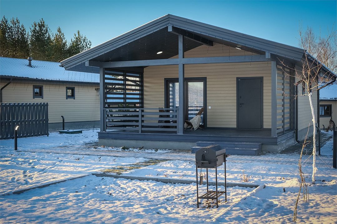 Прекрасный домик "Оптима" со спальней и кухней-гостиной. Насладитесь потрясающим видом на лесной массив с просторной террасы, приготовьте вкусный ужин на мангале и расслабьтесь в собственной сауне