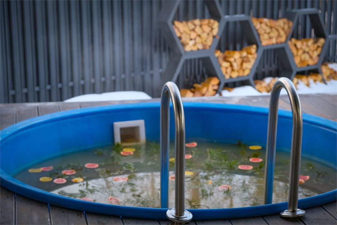 Дополнительно можно приобрести березовые или дубовые веники. Есть купель. Холодная входит в стоимость аренды бани. Горячая - за дополнительную плату (5000 ₽).