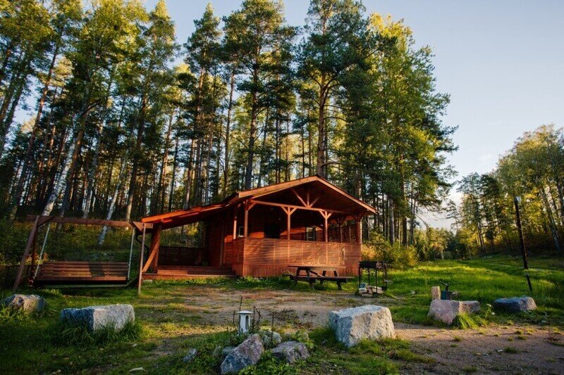 В одноэтажном коттедже — две комнаты для сна, кухня-гостиная и душевая. Есть где погулять: 5 минут до озера и ресторана. Чистый воздух и тишина, рыбалка и барбекю — все, что нужно для отдыха от городского шума.