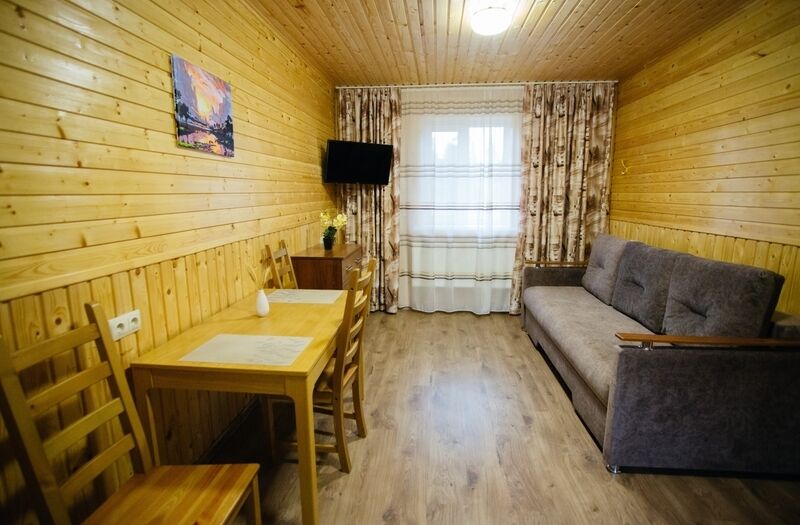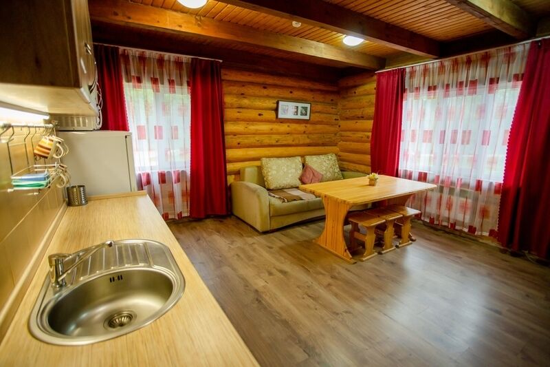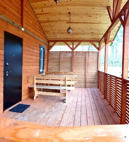 В вашем распоряжении — одноэтажный коттедж с видом на хвойный лес. В доме есть 2 комнаты и кухня-гостиная, рядом. Никакого шума и соседей, другие домики расположены на расстоянии 50 метров. До рыбного озера идти 5-7 минут.