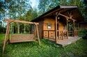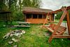 На улице — зона отдыха с мангалом, очагом для костра, столом и деревянными качелями.