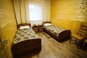Комната №2 с двумя односпальным кроватями, комодом, столом, табуретками и вешалкой для одежды.