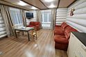 Гостиная с раскладным диваном, мини-кухней, столом и спутниковым TV.