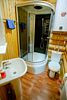 Санузел — душевая кабина, туалет, раковина, туалетная бумага.